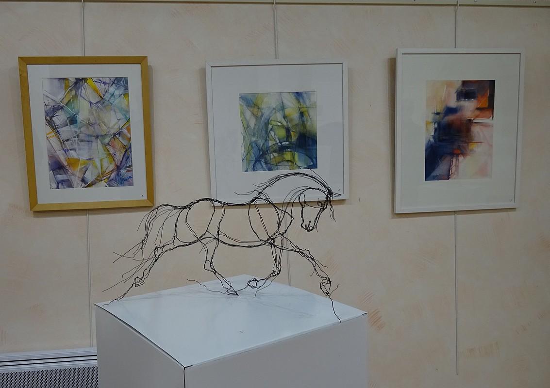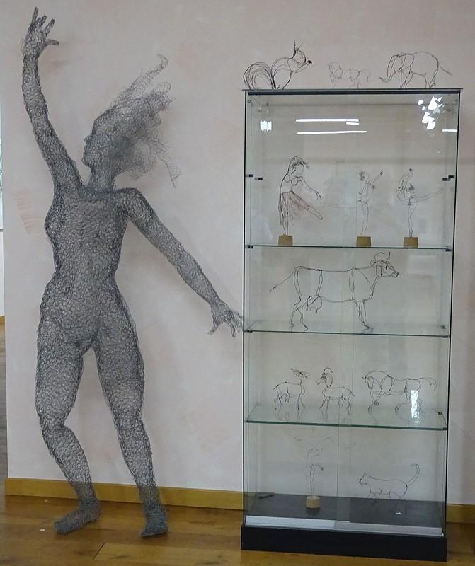 Sculpteur et peintre, Cosima Guérin a toujours fabriqué des personnages ou des animaux avec toutes sortes de fils de fer. Le fil de fer lui permet de créer des volumes et des formes de toutes sortes : arachnéennes, flottant dans l’espace… Les chevaux étant sa passion, elle en a fait son sujet favori. Elle les observe et tente de capturer une attitude, une posture, un regard…Transparence et légèreté s’allient pour apporter vitalité et mouvement dans ses sculptures.