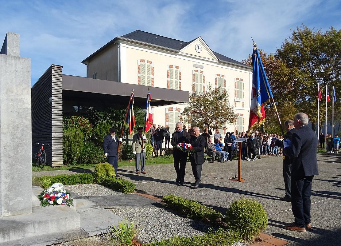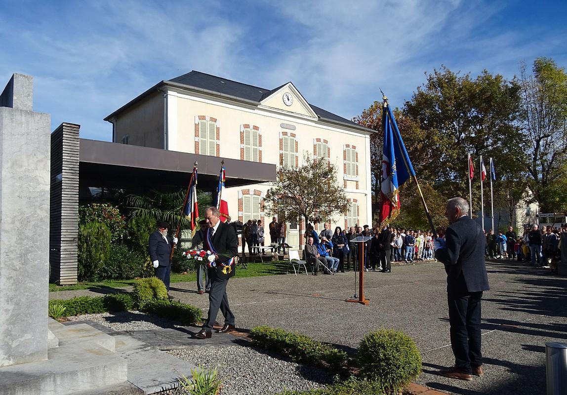 La cérémonie s'est déroulée sur le parvis de la mairie, en présence du maire, M. Pedeboy, des élus municipaux, des membres de la FNACA, dont le président M. Dupouey, des porte-drapeaux, des anciens combattants, des représentants de l'armée, ainsi que d'un public nombreux et respectueux.